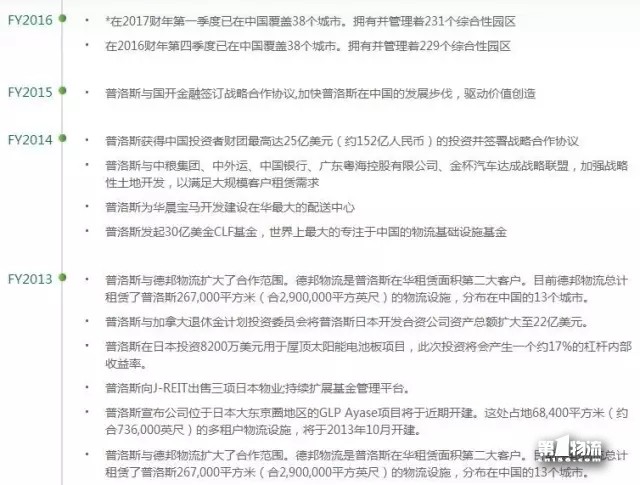 普洛斯致力于為全球最具活力的制造商、零售商和第三方物流公司不斷提高供應(yīng)鏈效率,達(dá)成戰(zhàn)略拓展目標(biāo);通過全面的開發(fā)、運營、基金管理和金融服務(wù),促進領(lǐng)先的物流生態(tài)圈發(fā)展。其主要發(fā)展歷程及合作項目如下:
